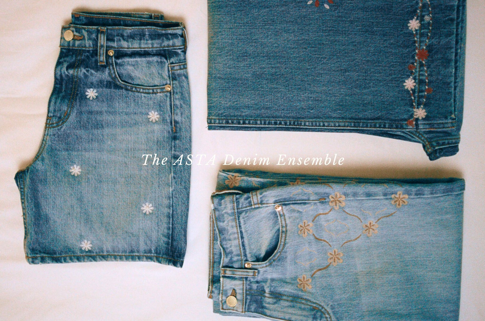 Designed and made in Los Angeles, the Helena Jean and Jas Denim Short mark the brand's evolution into the realm of iconic denim styles. Featuring intricate embroideries and motifs central to the ASTA RESORT world.