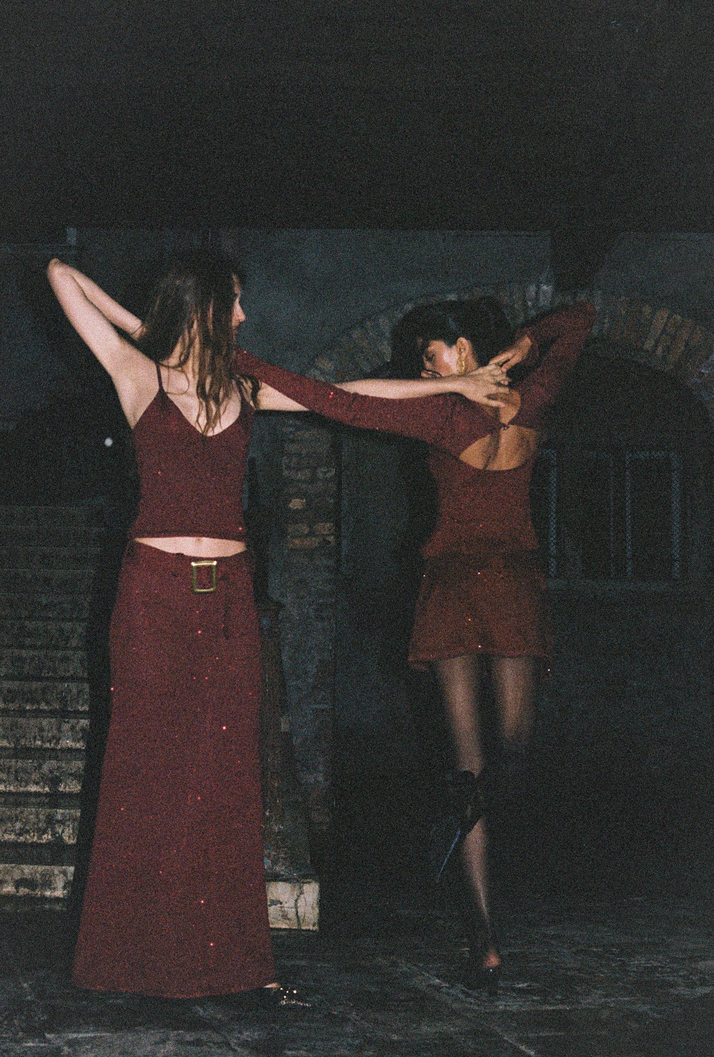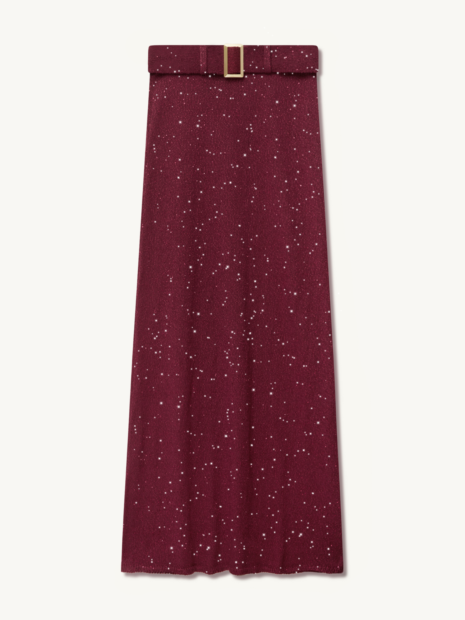 The Alma Belted Skirt in Port Sequin by ASTA RESORT.