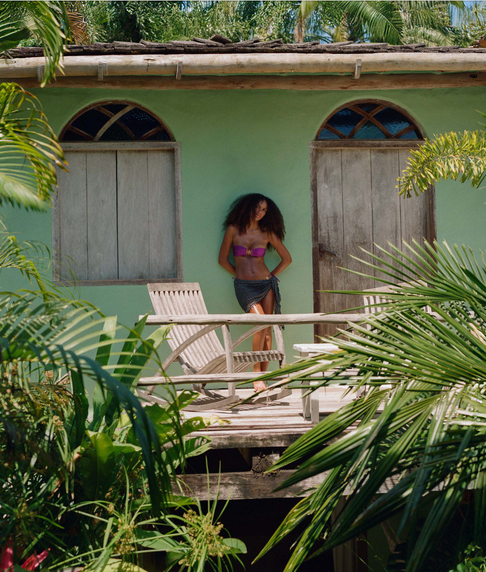 The mini Ana Sarong is crafted in a delicate hand-crocheted knit, finished with hand-applied beaded fringe that allows it to hang effortlessly and fluidly on the body. The tie feature allows for a universal fit.