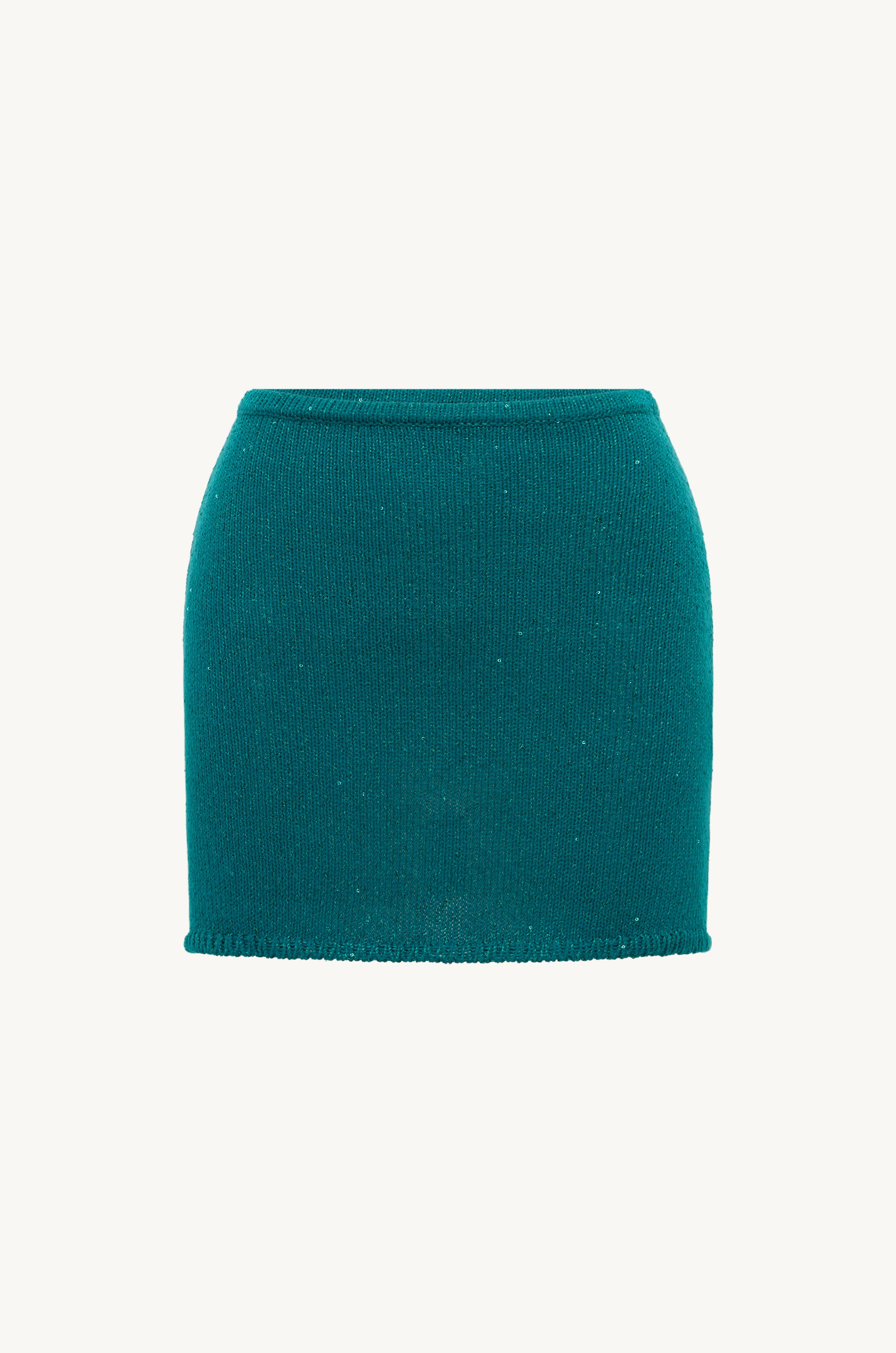 A forever-favourite mini, designed as the foundation of every sun-drenched wardrobe. Crafted from a cotton-based knit threaded with micro sequins for a subtle, glistening sheen.
