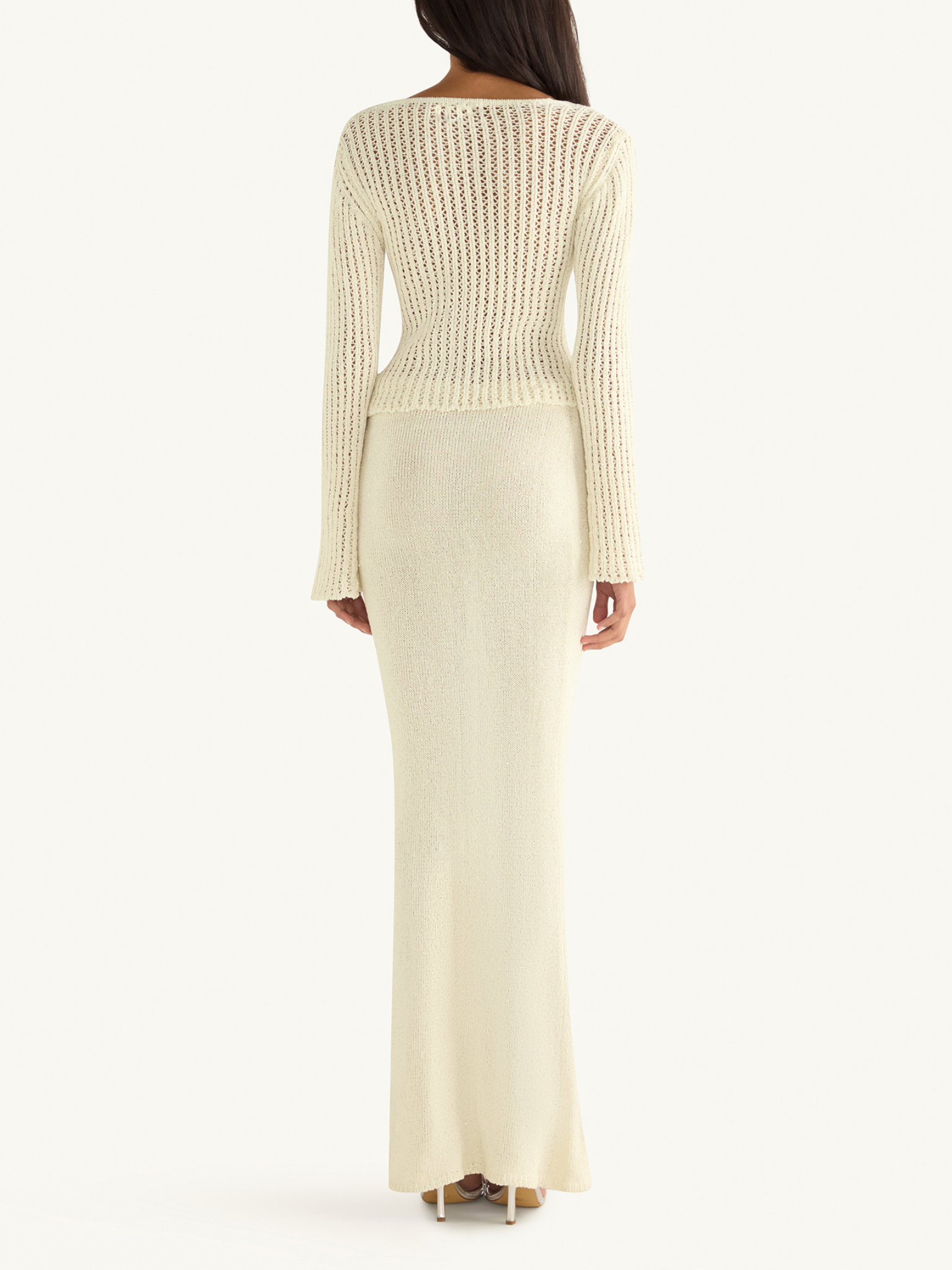 The Fernanda Crochet Cardigan in Salt Sequin by ASTA RESORT.