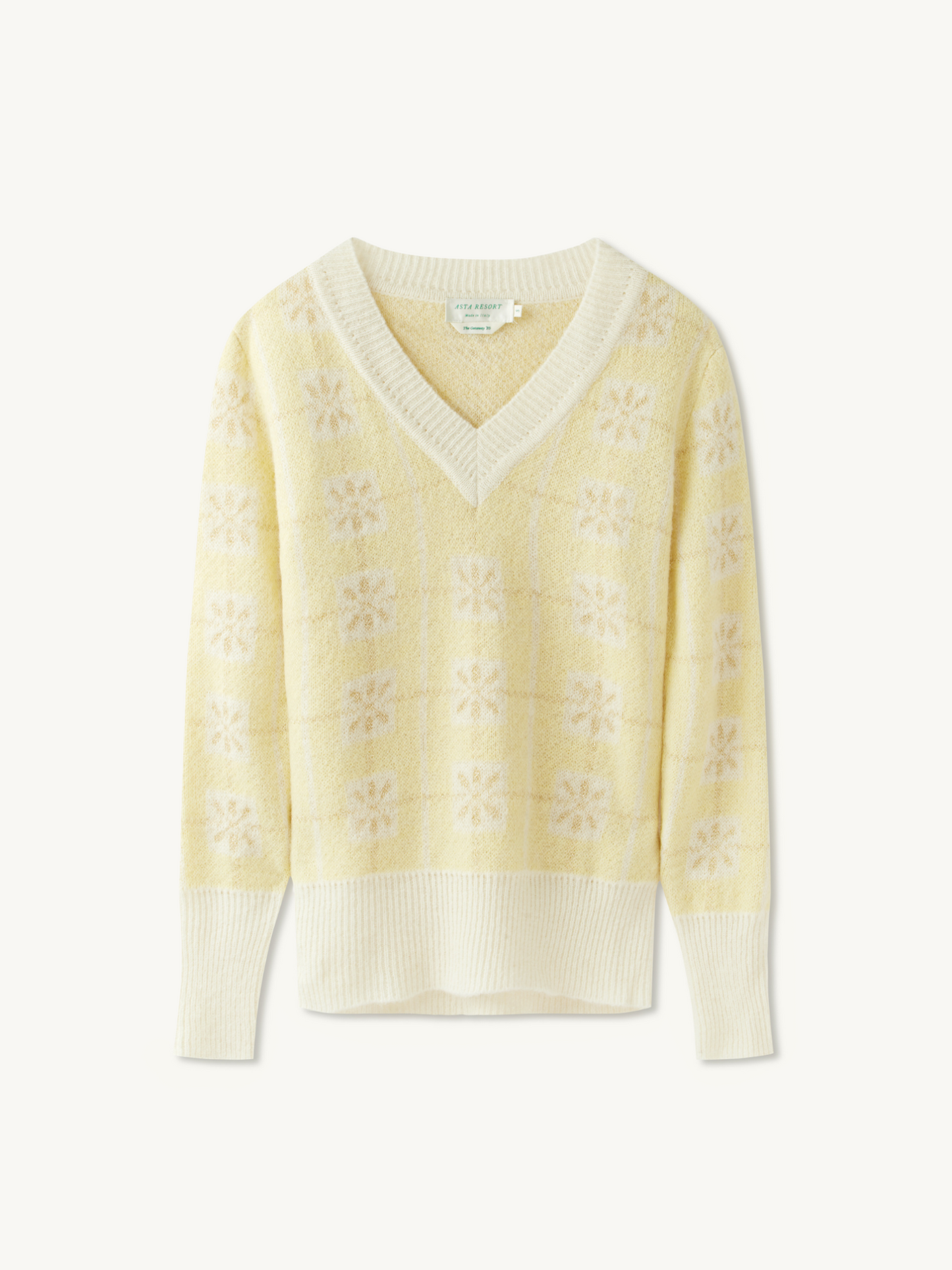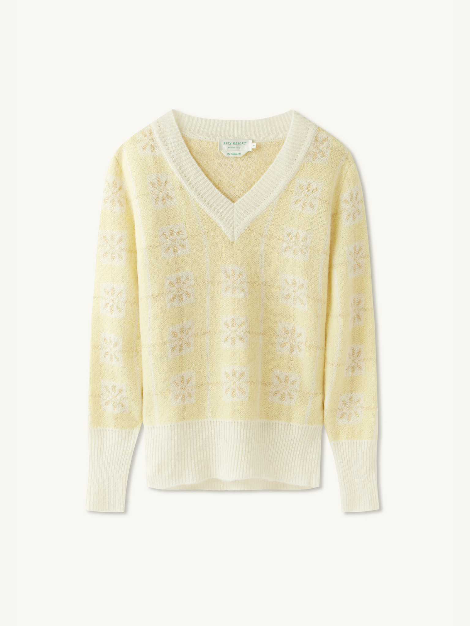 The Gigi Jacquard Sweater by Asta Resort in Butter Yellow.