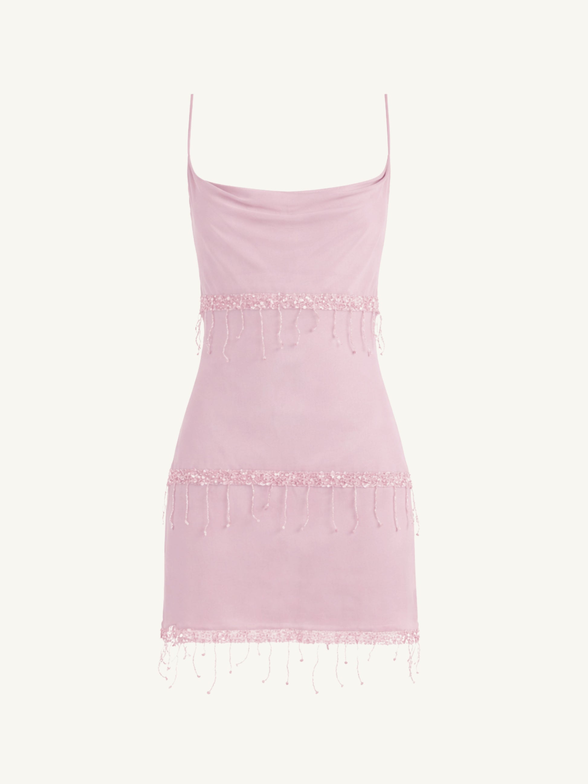 The Layla Handed Beaded Mini Dress in Pink Salt by ASTA RESORT.