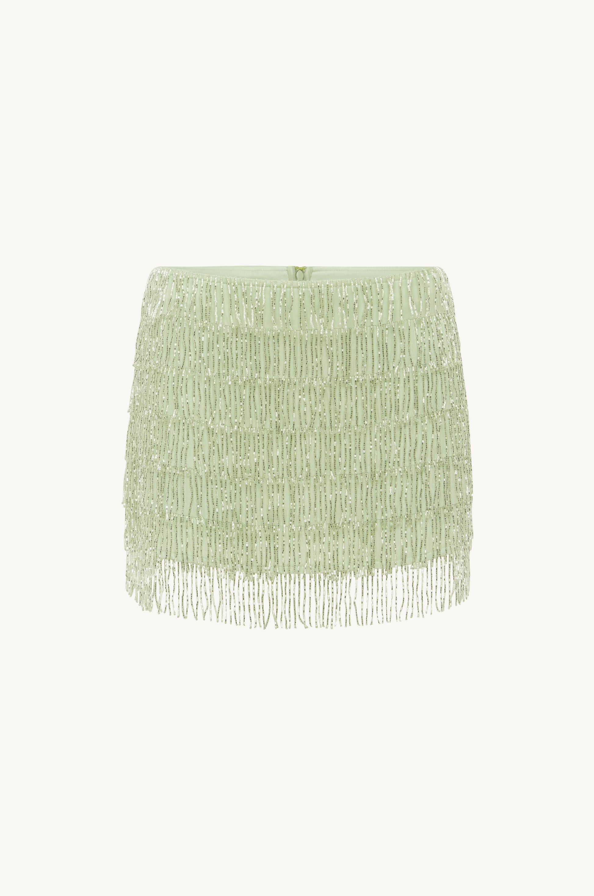 The Marcia Beaded Mini Skirt in Seafoam by ASTA RESORT.