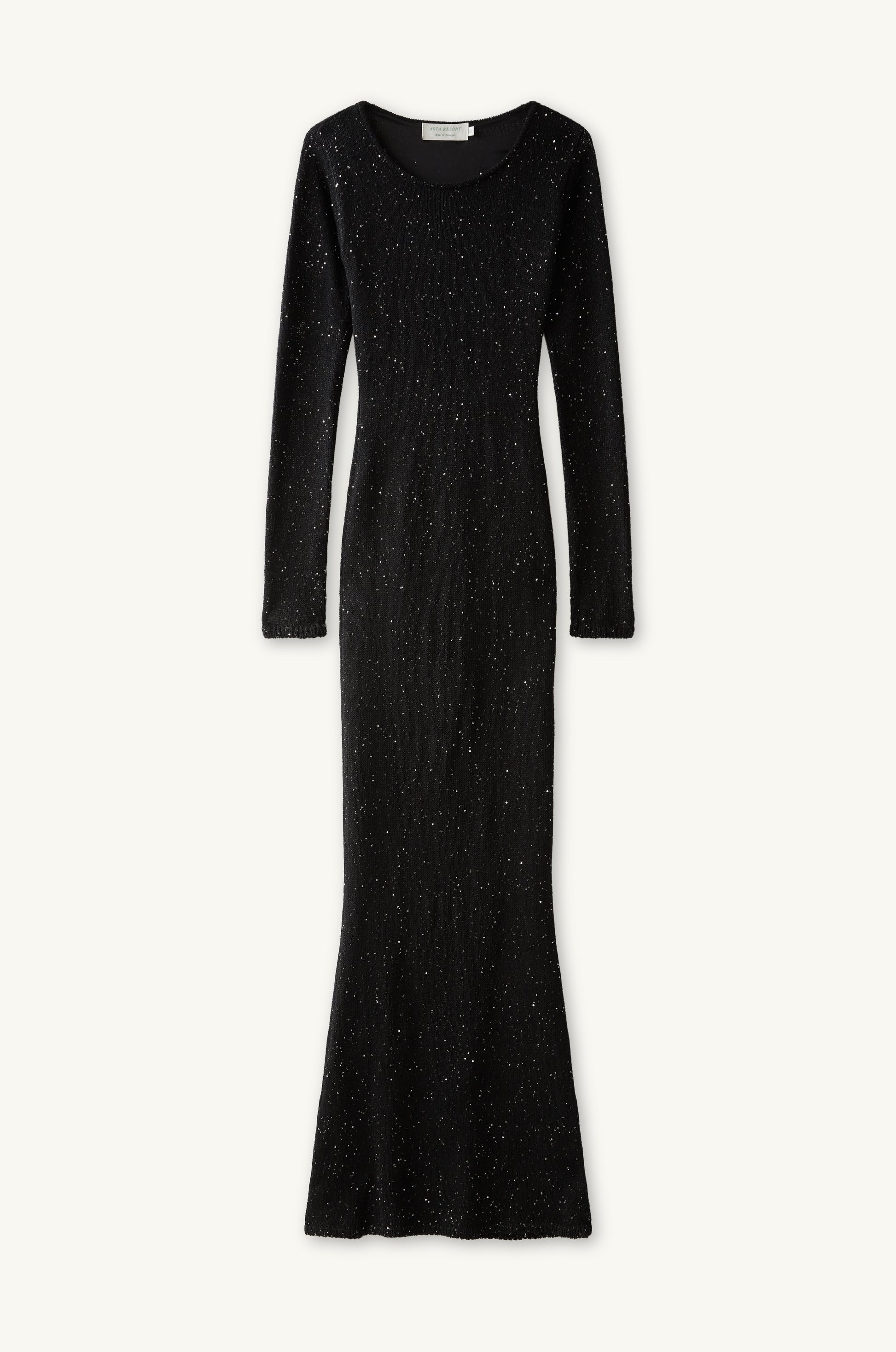 The Natalia Long Sleeve Dress in Black Sequin by ASTA RESORT.