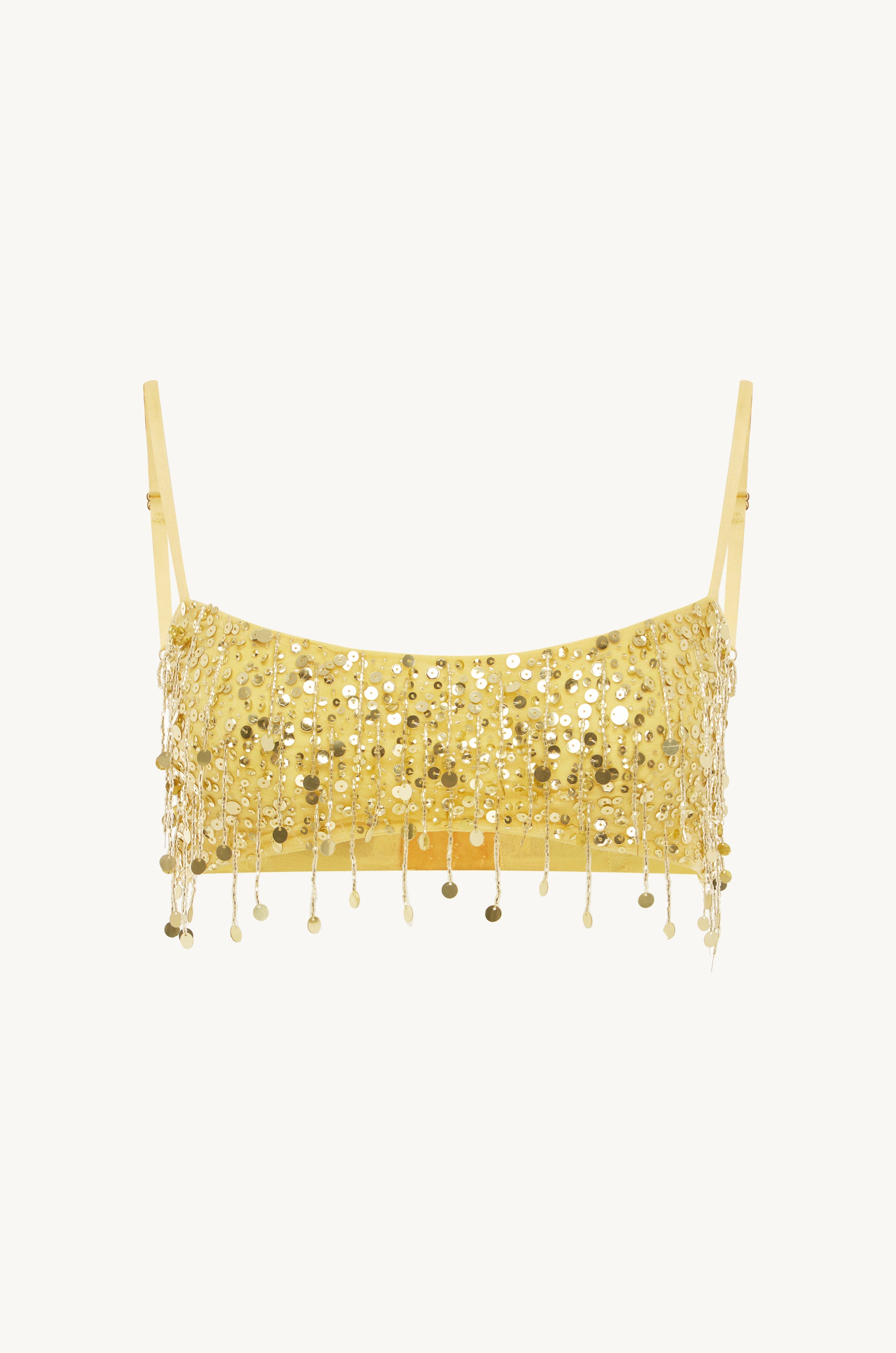 The Yasmin Hand Beaded Bralette in Gold by ASTA RESORT.